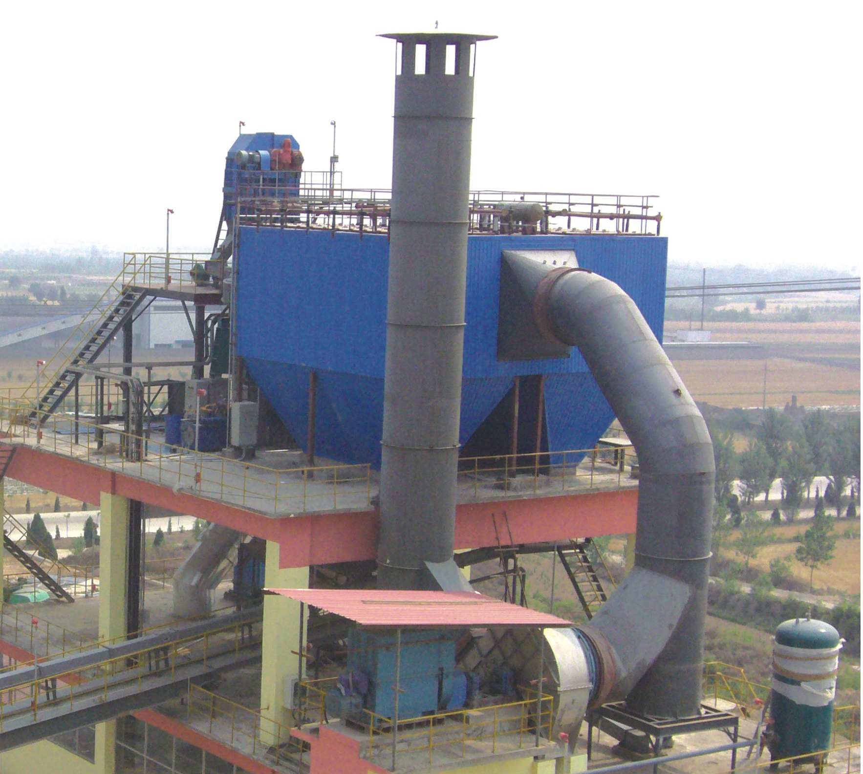 陜西金龍水泥2500t/d新型干法旋窯水泥生產線窯頭、窯尾大布袋除塵器;煤磨除塵器以及全線輔機設備布袋除塵器,QMC 96-2×6(M)煤磨布袋除塵器一臺。