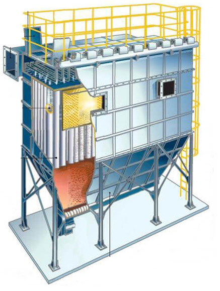 塵斗:塵斗設(shè)置在布袋室下方。除了收集灰塵外,它還用作進氣管。含塵氣體在進入布袋室前,首先進入集塵斗,粗顆粒的粉塵會被收集在這里。