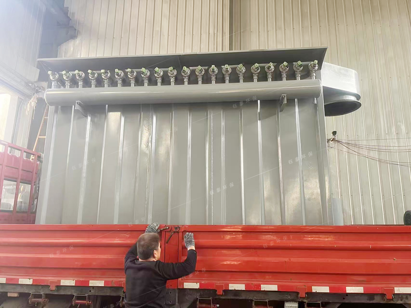 灰?guī)觳即龎m器改造實施計劃,為每臺除塵器增設(shè)通風(fēng)煙道至地面與落地的抽塵風(fēng)機連接,并在煙道設(shè)置手動調(diào)風(fēng)閥ф460mm、更換落地抽塵風(fēng)機3臺,檢修平臺3套、更換上箱體花板、安裝褶皺濾袋、噴吹管、脈沖控制儀、氣源壓力低值報警裝置、控制系統(tǒng)、真空釋放閥3臺,逆止閥3臺。
